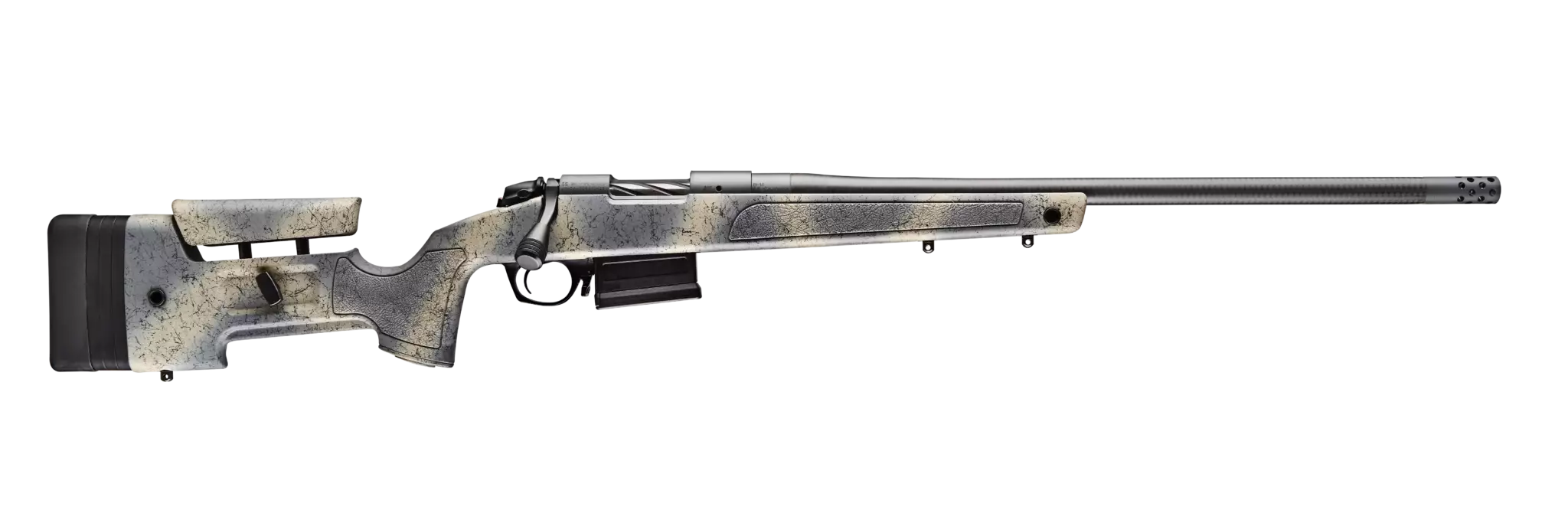 Hiilikuituinen No. 6 profiilin piippu vähentää painoa jopa 200–400 g verrattuna perinteiseen teräsversioon. Tukki on karhennettu ja camokuviolla käsin maalattu, ja sen sisään on integroitu mini-chassis-runko toistettavan tarkkuuden varmistamiseksi. Mukautuva vetopituus (LOP) ja säädettävä poskipakka mahdollistavat henkilökohtaistetun käyttökokemuksen.