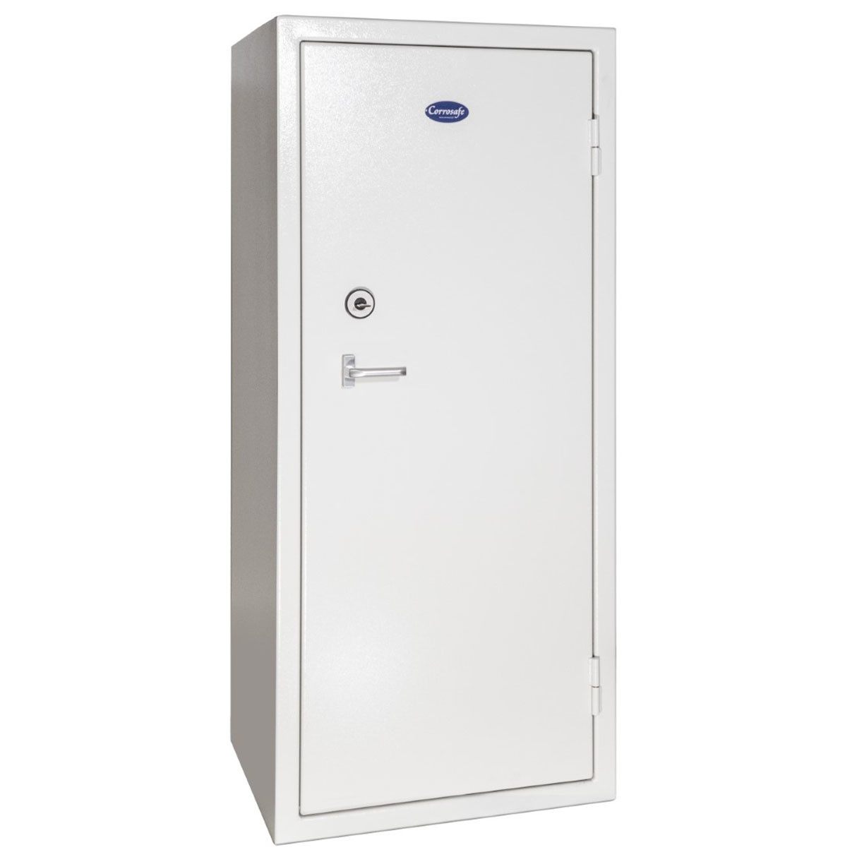 Suurin Corrosafe-asekaappi on todellinen tilaihme tosiharrastajalle. Perusvarustuksessa tilaa maksimissaan 30 aseelle. Sivuhyllysarjalla lisää säilytystilaa varusteille ja kodin arvotavaroille, tilaa jää vielä silti vielä 16 aseelle. Perusvarustukseen kuuluu 1 kpl hylly, asetuet 30 aseelle ja 3 kpl 435mm leveää laatikkoa. Hyllyn ja asetukien paikat vapaasti säädettävissä. Kaapissa on vakiona avaimella toimiva lukko, mutta koodilukko on tilattavissa lisävarusteena.