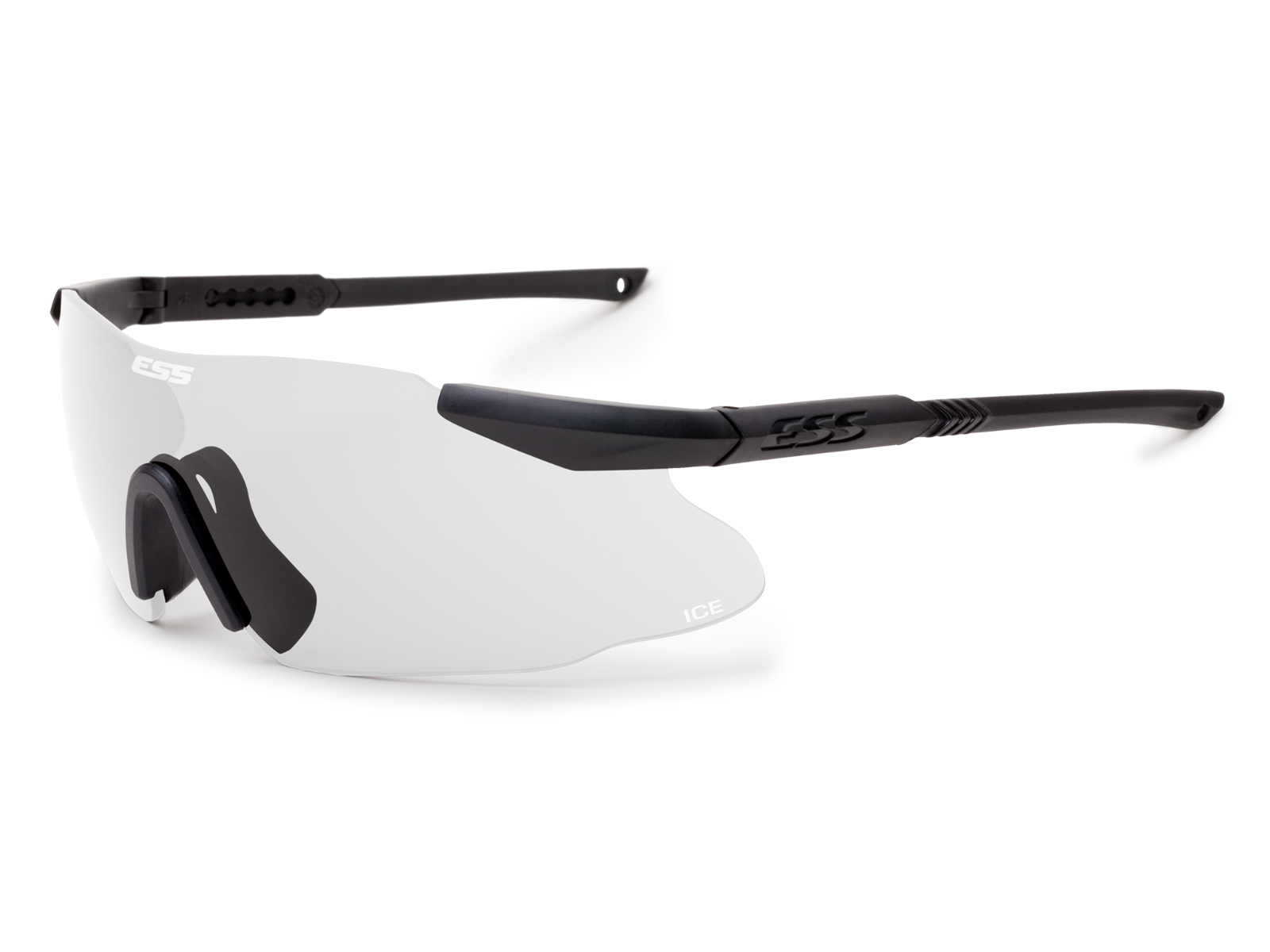 ESS ICE One Clear -ampumalasit ovat suojalasit, joissa on kirkas ballistinen polykarbonaattilinssi. Ne tarjoavat 100% UVA- ja UVB-suojan ja niissä on naarmuuntumista estävä pinnoite. Lasien sangat ovat säädettävät, mikä tekee niistä yhteensopivat useimpien kypärien ja kuulonsuojainten kanssa. Tuotteen mukana tulee mikrokuitupussi ja hihna.