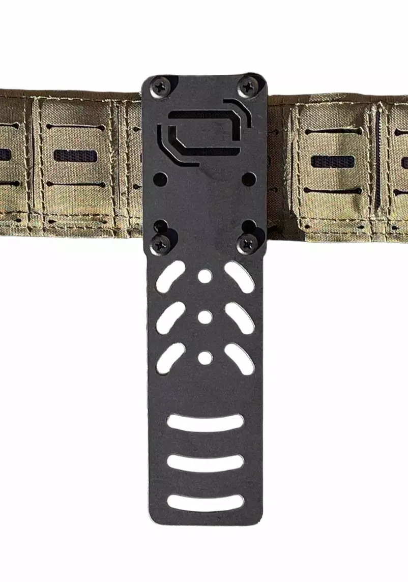 HDM-1-BLK on alumiininen holsterin kiinnitysjärjestelmä, joka parantaa vetokulmaa ja sijoittelua erityisesti panssarin tai vyölle kiinnitetyn varustuksen kanssa.