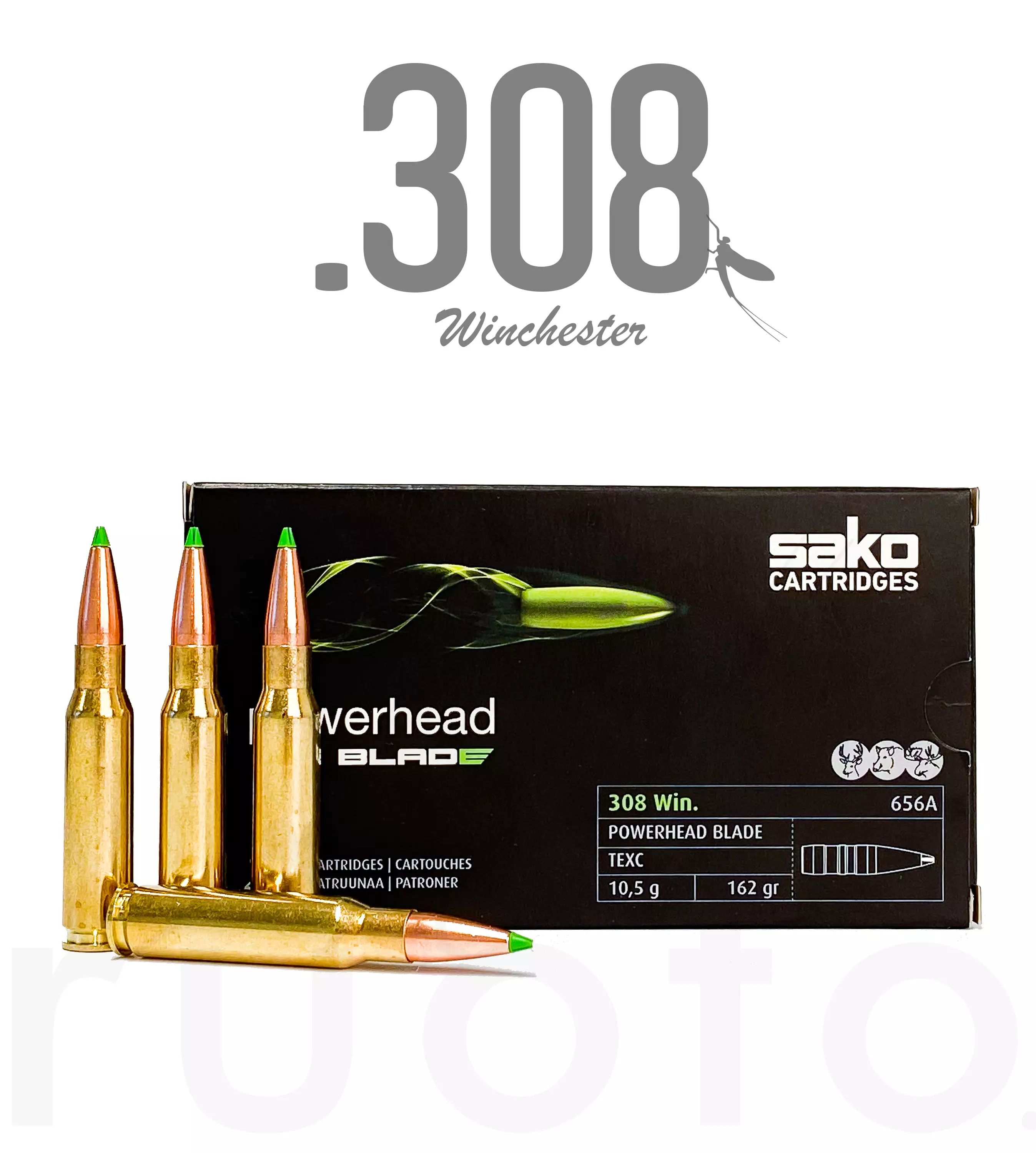 Ladataan tiedostolistaa...Sako Powerhead Blade .308 Win 10,5g on 100 prosenttisella kupariluodilla varustettu uusi suomalaisvalmisteinen kiväärin patruuna. Sako Powerhead Bladen salaisuus piilee sen tarkasti sorvatussa luodissa, jonka etupäätä koristaa vihreä aukeamista parantamaan suunniteltu muoviosa. Blade-kärki parantaa luodin aukeamista hitaammallakin nopeudella (pitkät ampumaetäisyydet ja pienempi riista). Samaan aikaan se toimii pommin varmasti myös nopeissa tilanteissa ja lyhyissä etäisyyksissä, kuten kotimaisessa hirvijahdissa.