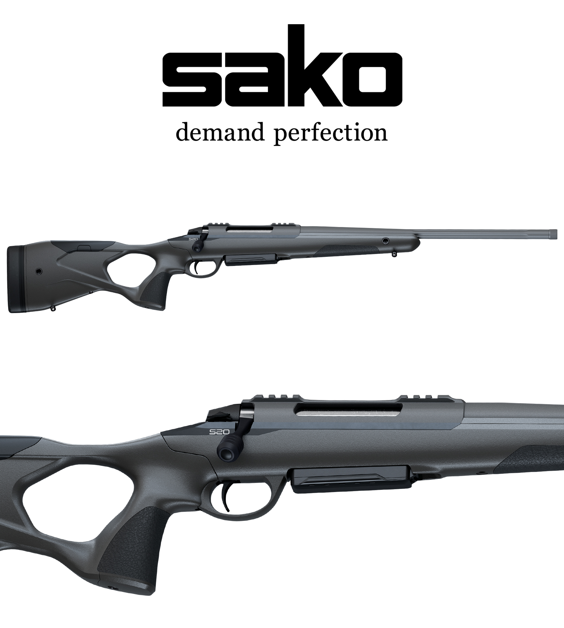 Sako S20 Hunter Cerakote on todella käytännöllinen ja monipuolinen metsästyskivääri. S20:n tukin ergonominen muotoilu yhdistettynä Sakon tuttuun laatuun ja tarkkuuteen tekevät tästä aseesta metsästystoverin, josta et halua luopua missään tilanteessa. Peukaloreikätukki tekee ampumisesta mukavaa ja lukon pieni latausliike mahdollistaa nopeammatkin sarjat tarpeen vaatiessa (latausliike noin 60 astetta). Cerakote-mallissa on tumman harmaa säänkestävä Cerakote-pinnoite.